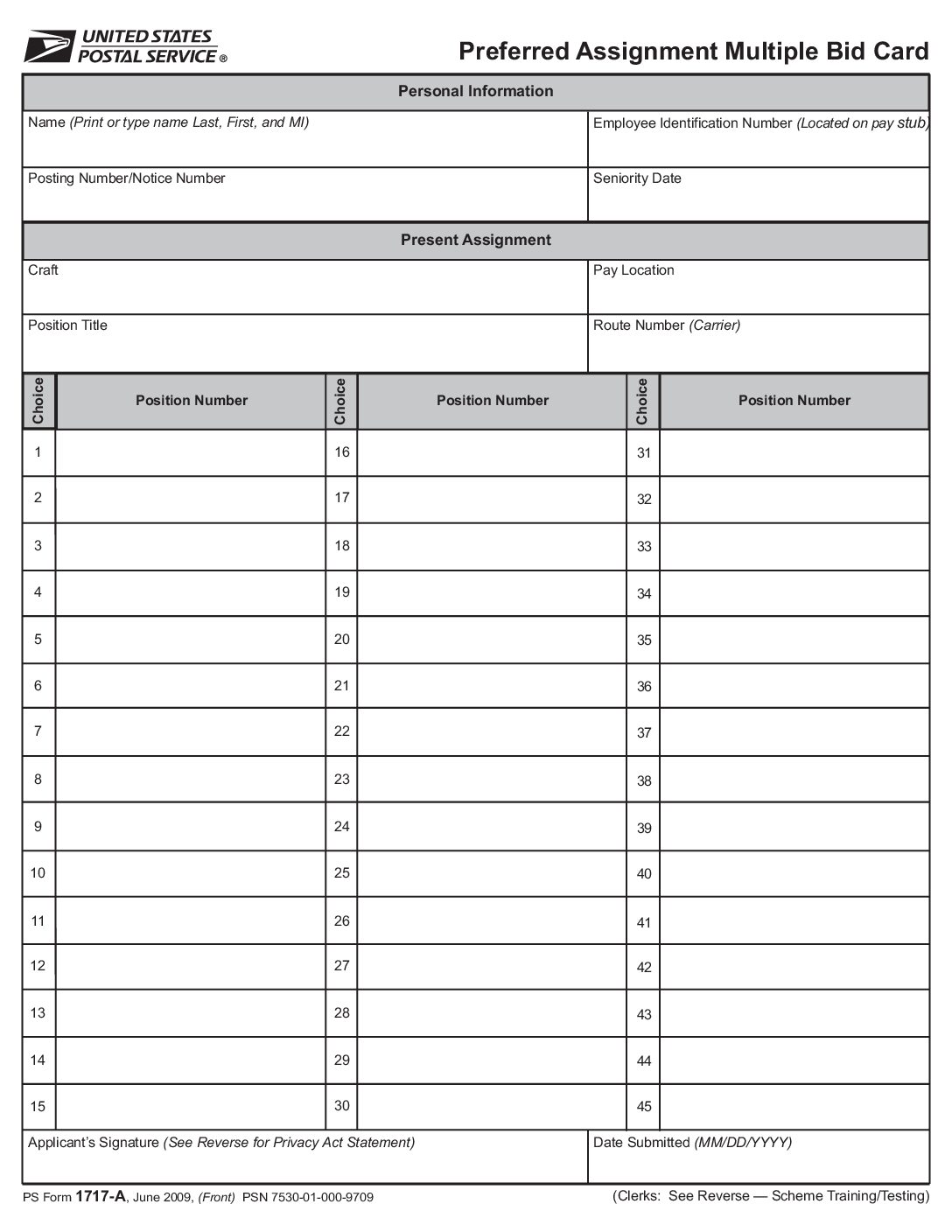 PS Form 1717-A can be used when an employee wants to bid on preferred job assignments within the Postal Service.